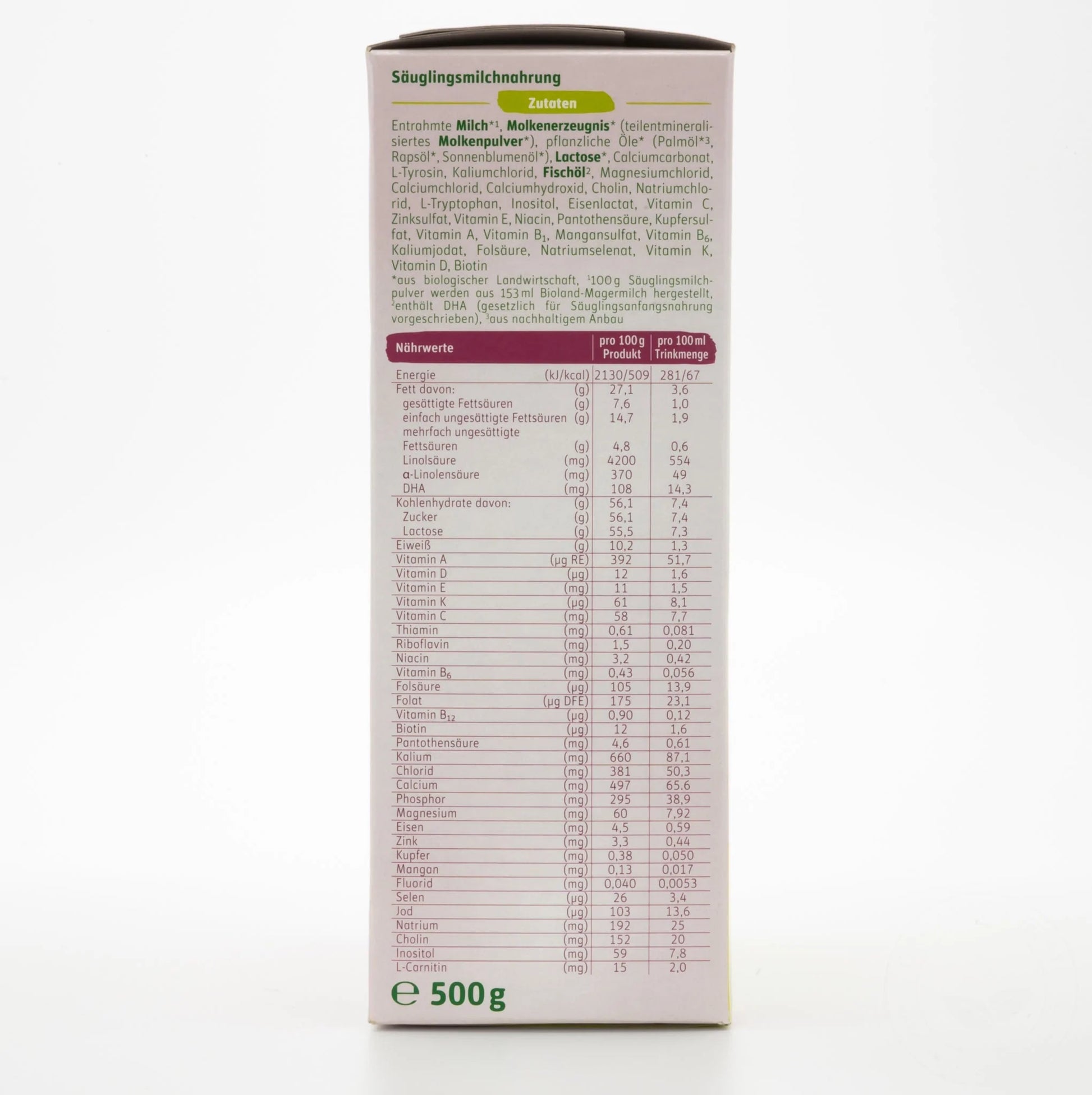 Recommended consumption: exclusive formula from birth or following breastfeeding. Also suitable as supplementary feeding to breast milk. Quick and easy preparation. The milk powder is only shaken with boiled water. Instructions on each package.